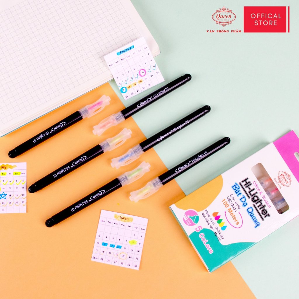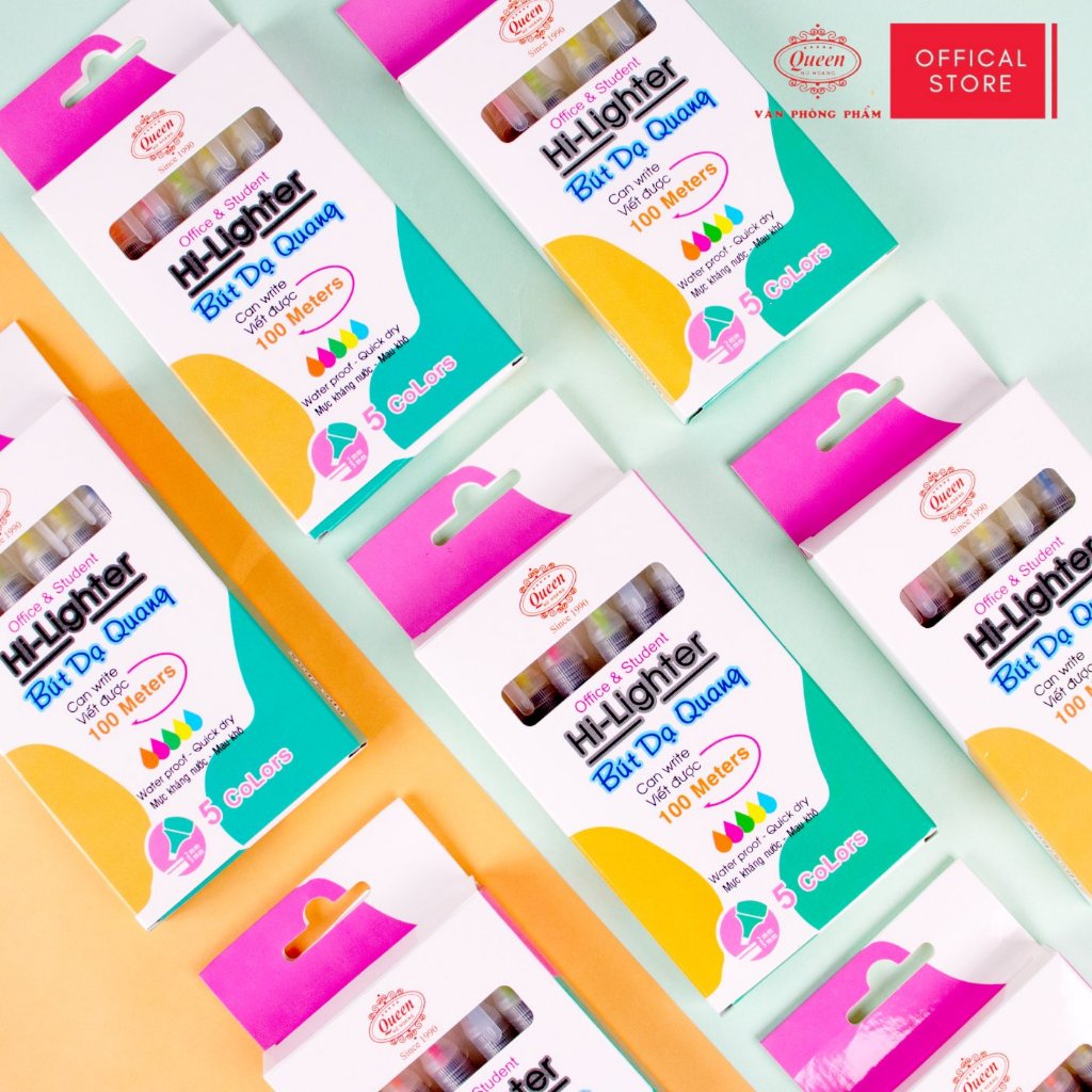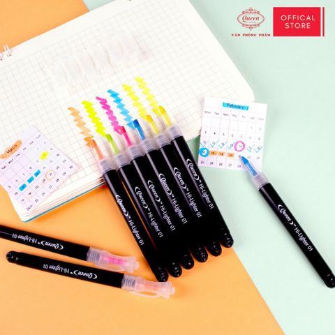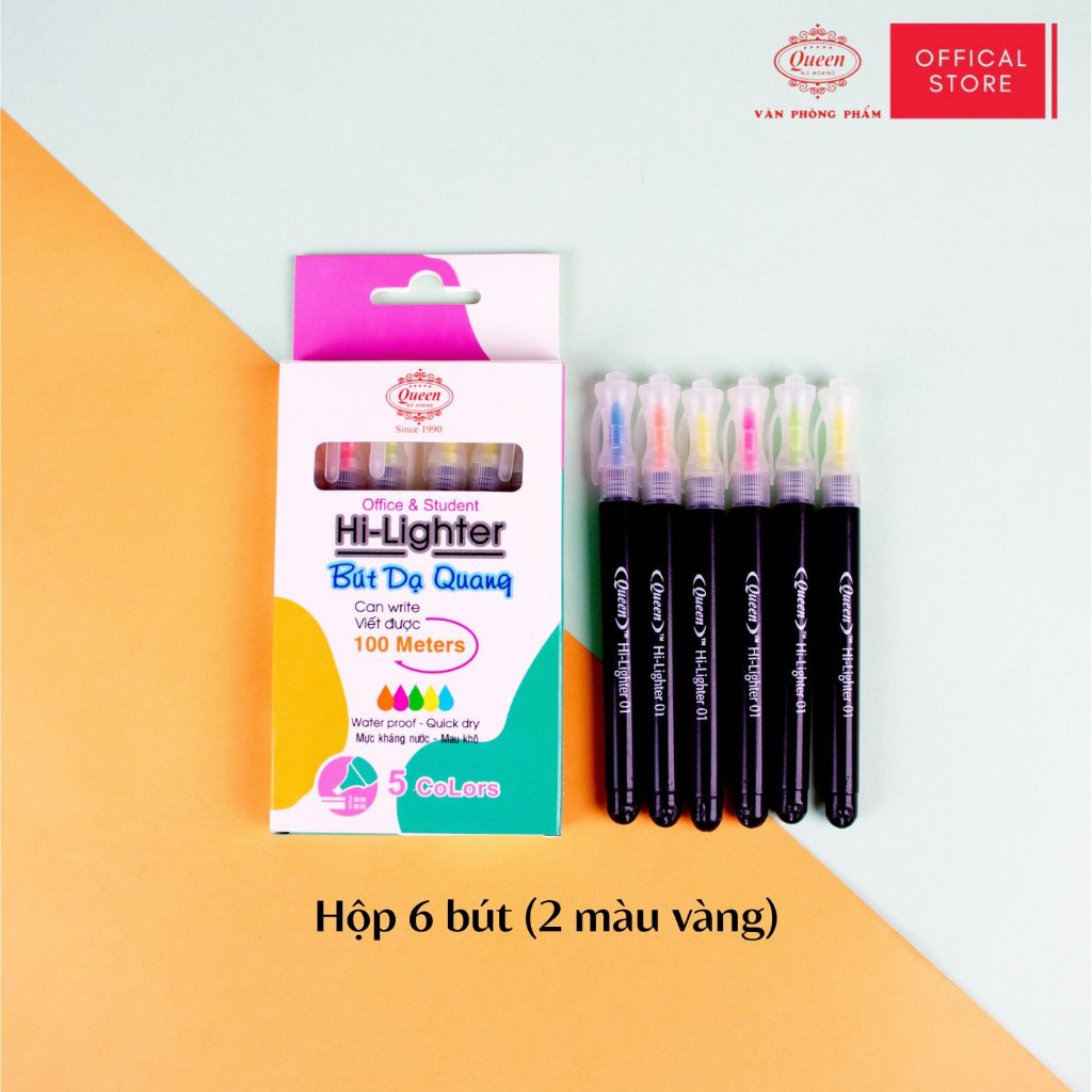 Bút dạ quang Queen HL-01 - Hộp 6 bút (5 màu, 2 màu vàng)