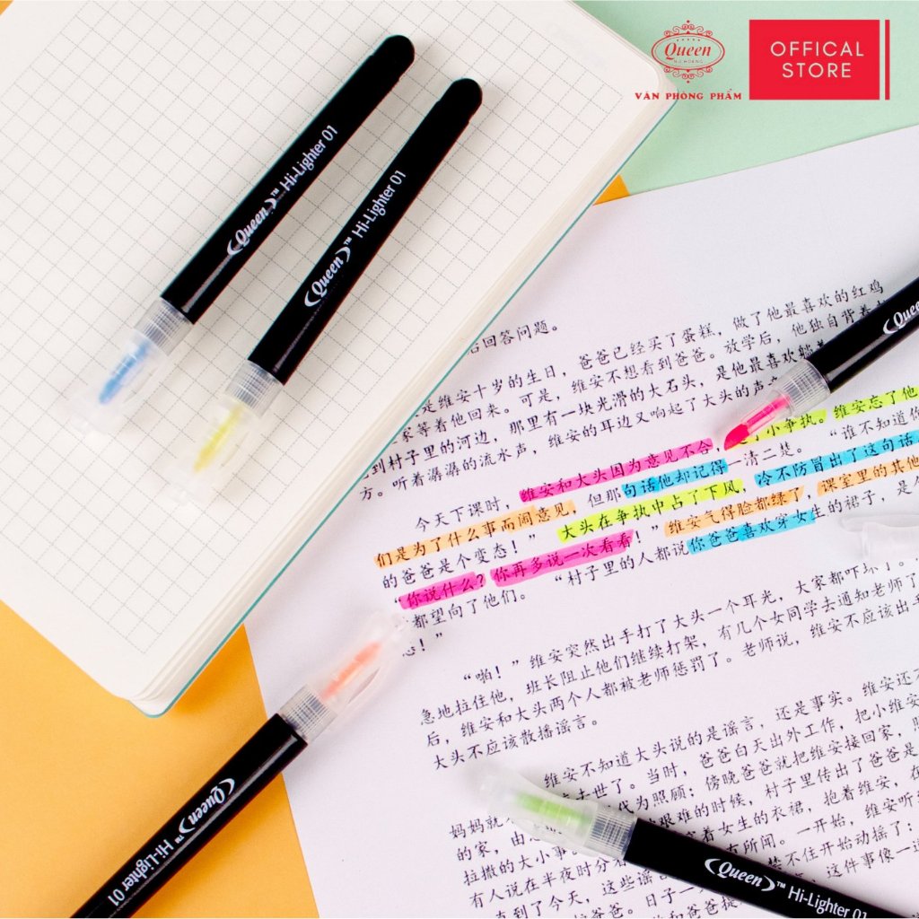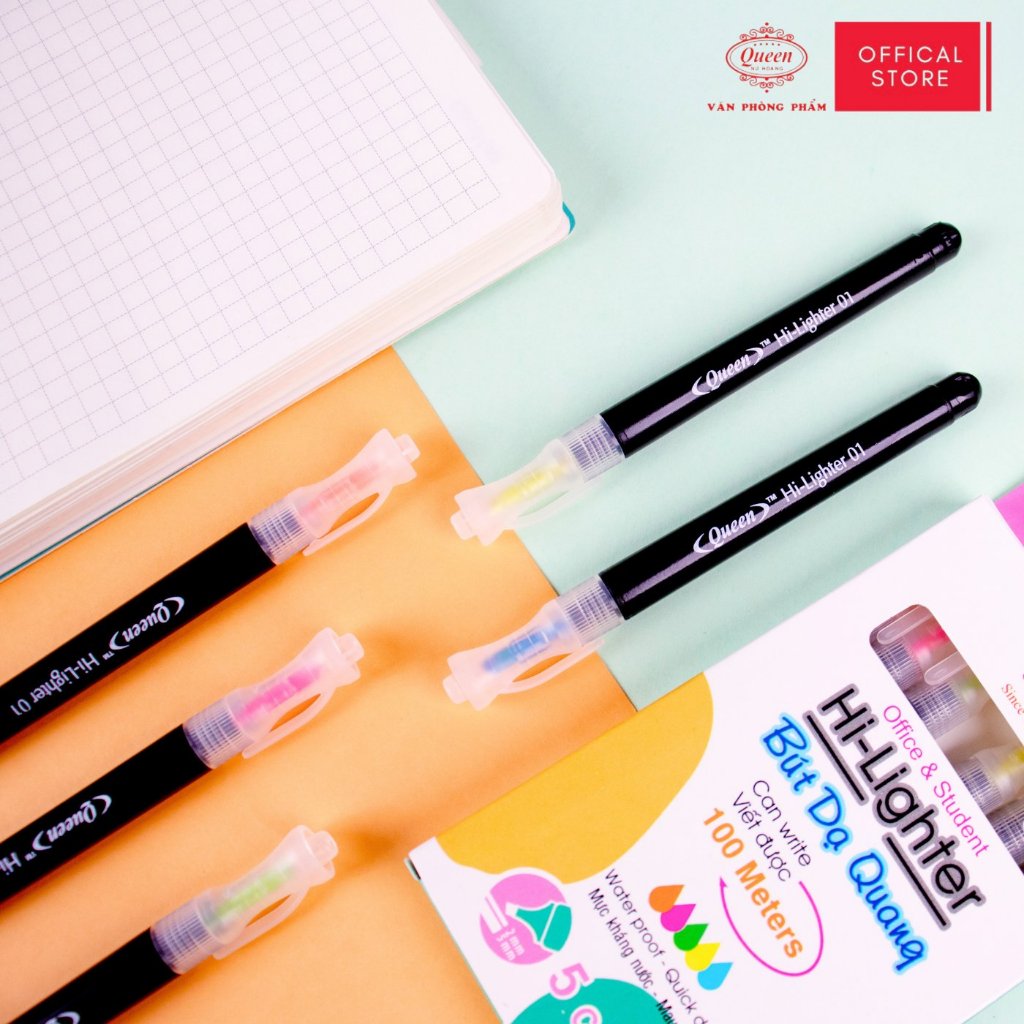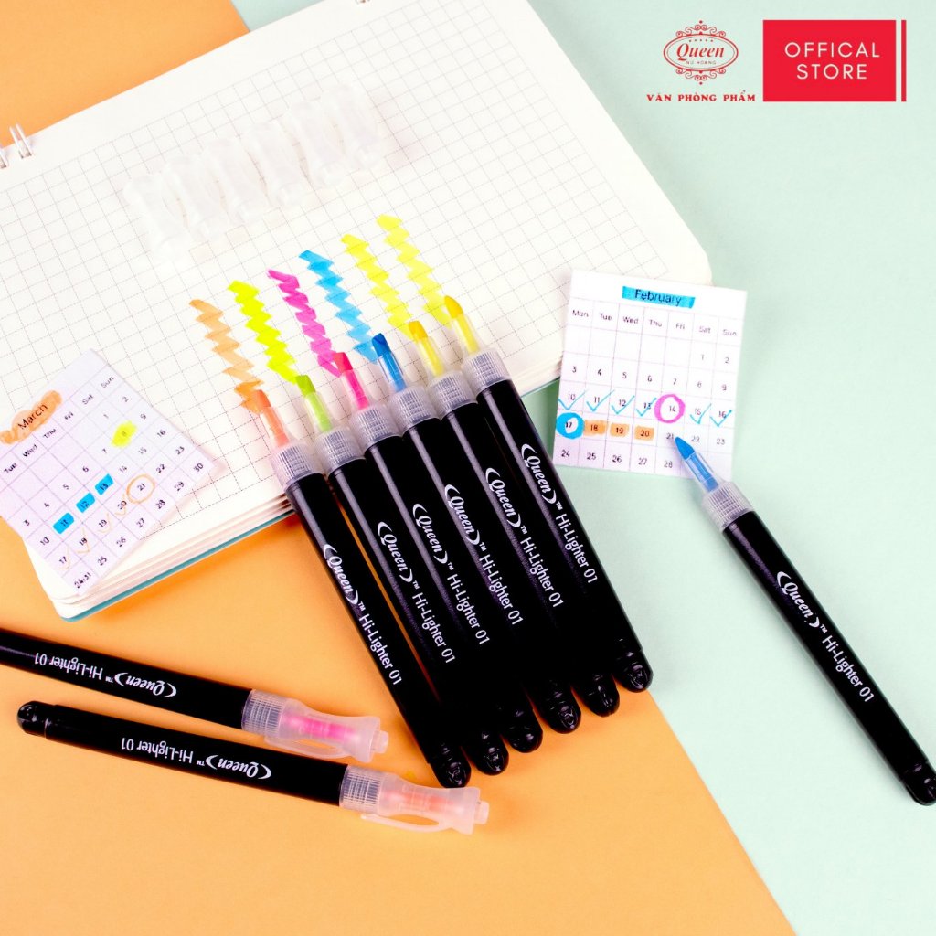 Bút dạ quang Queen HL-01 - Hộp 6 bút (5 màu, 2 màu vàng)