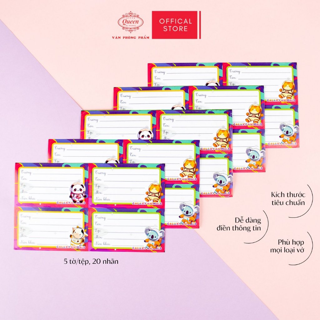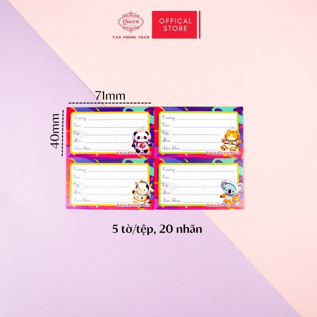 Nhãn Vở Học Sinh Galaxy Animal Queen – Họa Tiết Thú Dễ Thương, Chống Lem Mực - LB901