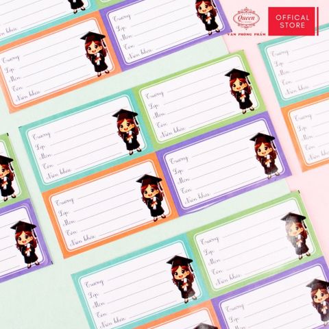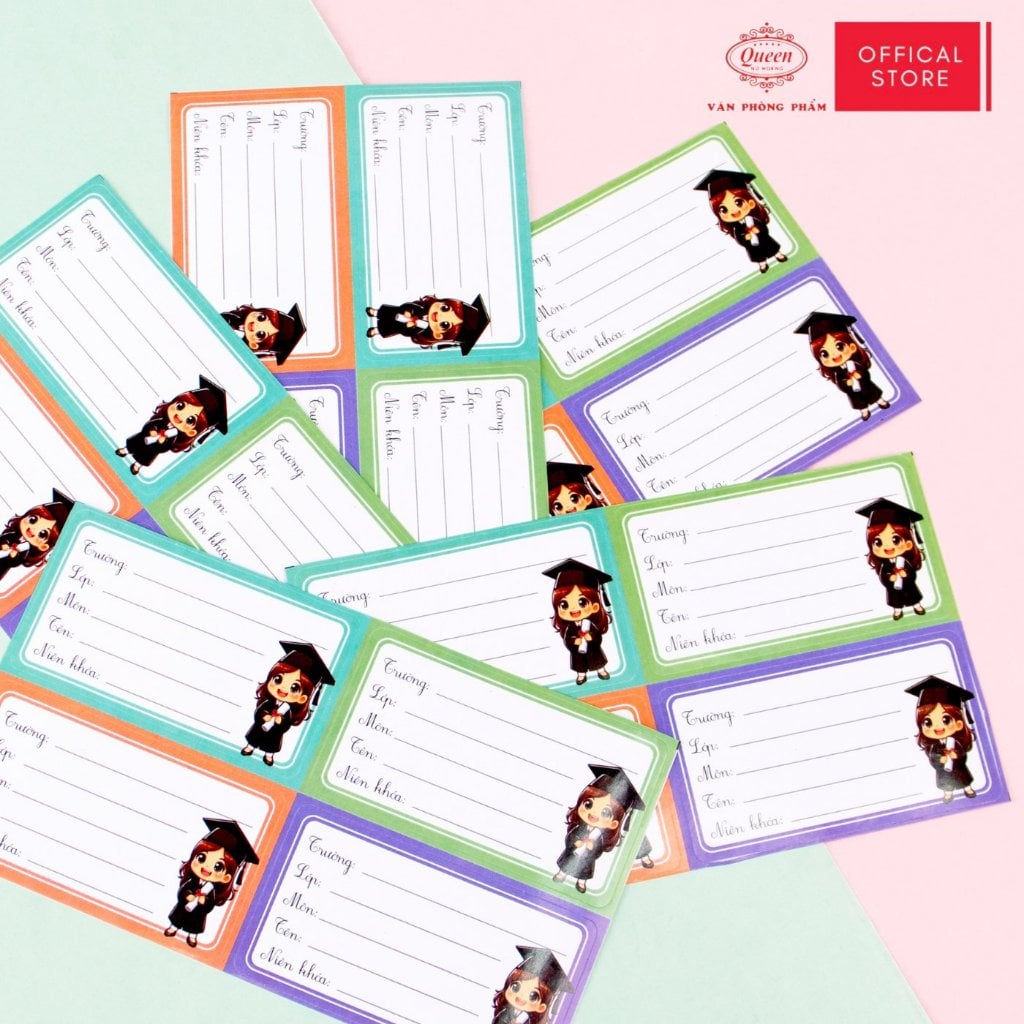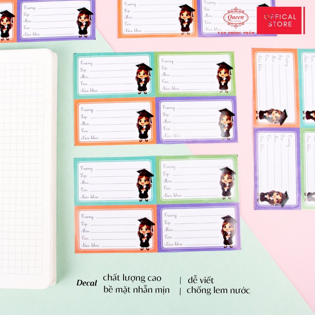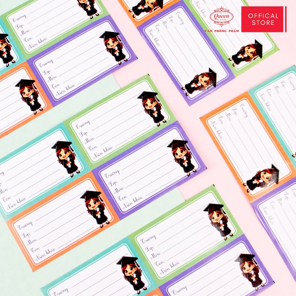 Nhãn Vở Học Sinh Nữ Sinh Queen – Họa Tiết nhân vật Dễ Thương, Chống Lem Mực - LB901