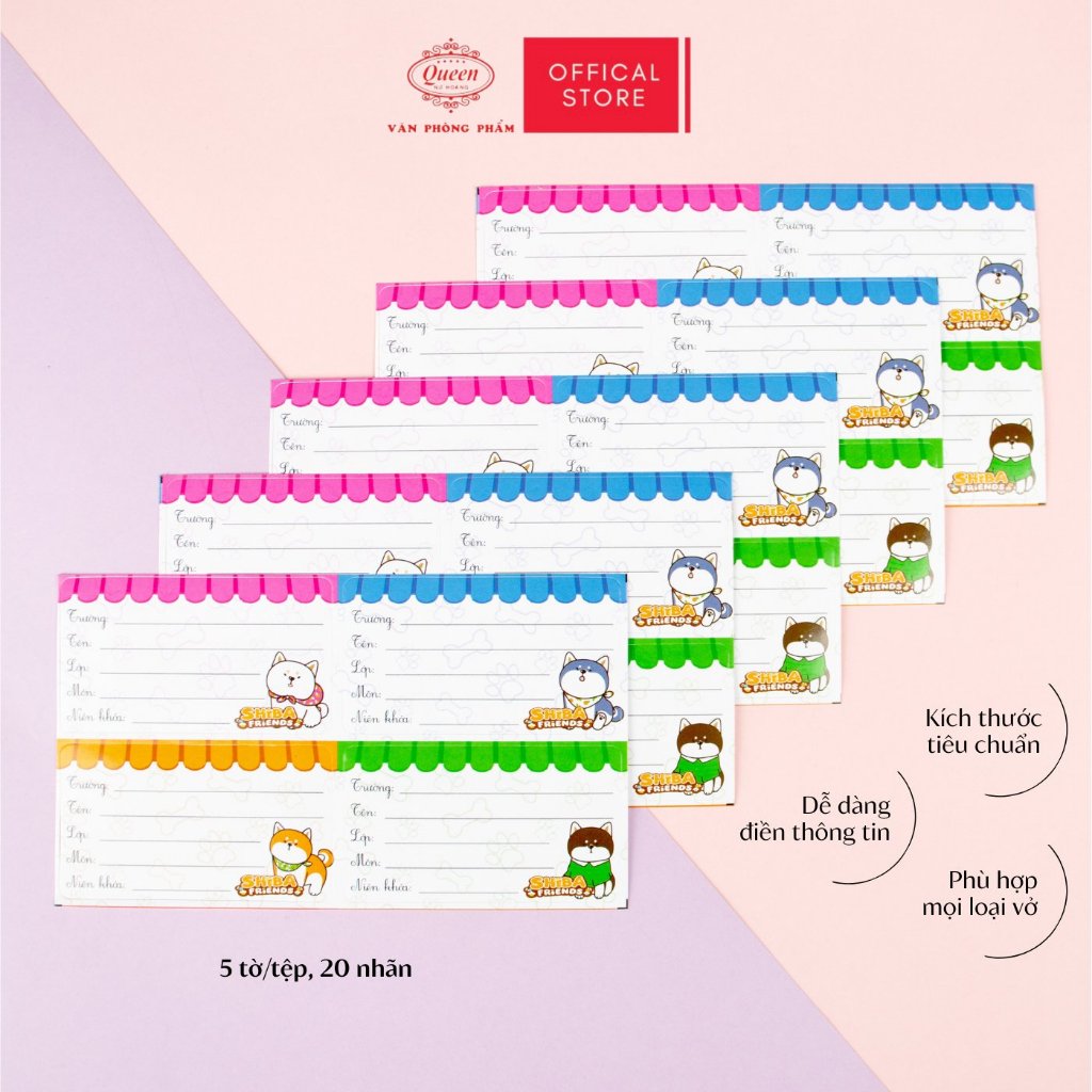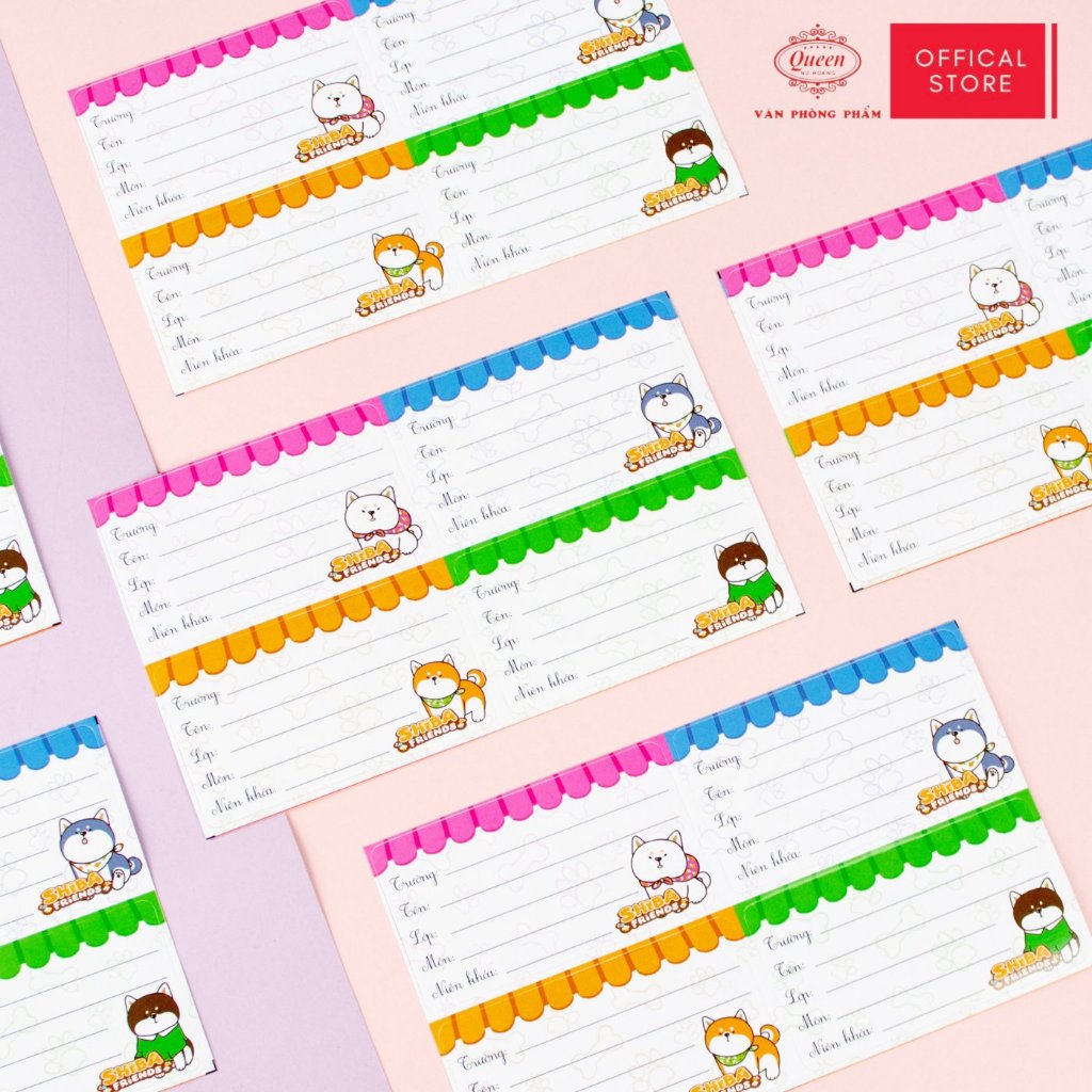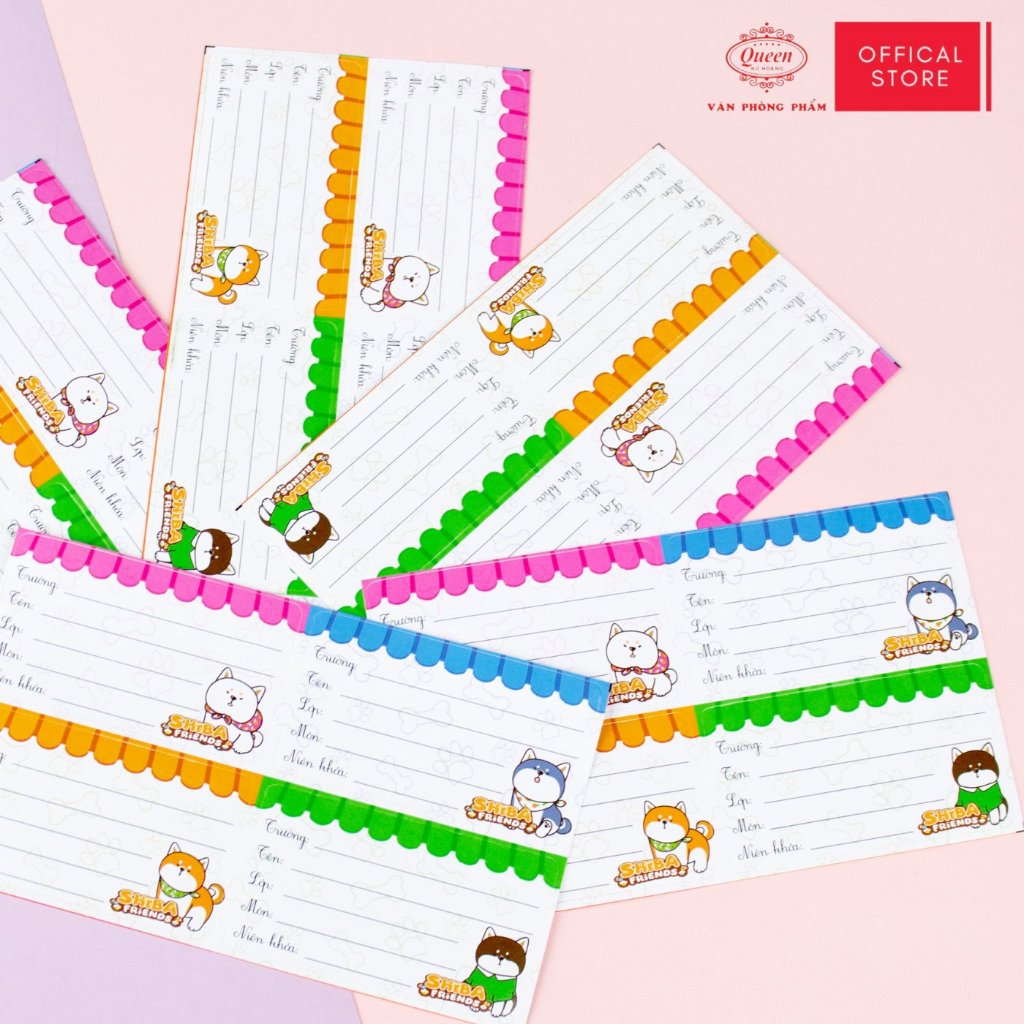 Nhãn Vở Học Sinh Shiba Queen – Họa Tiết Chó Shiba Dễ Thương, Chống Lem Mực - LB901
