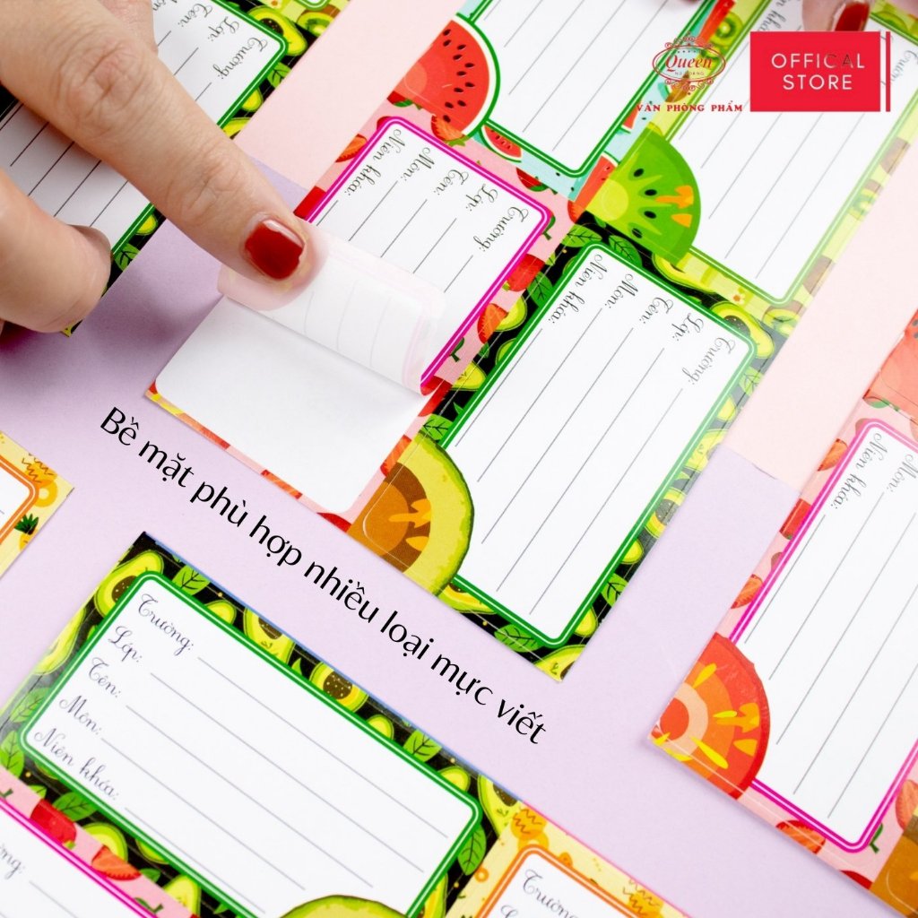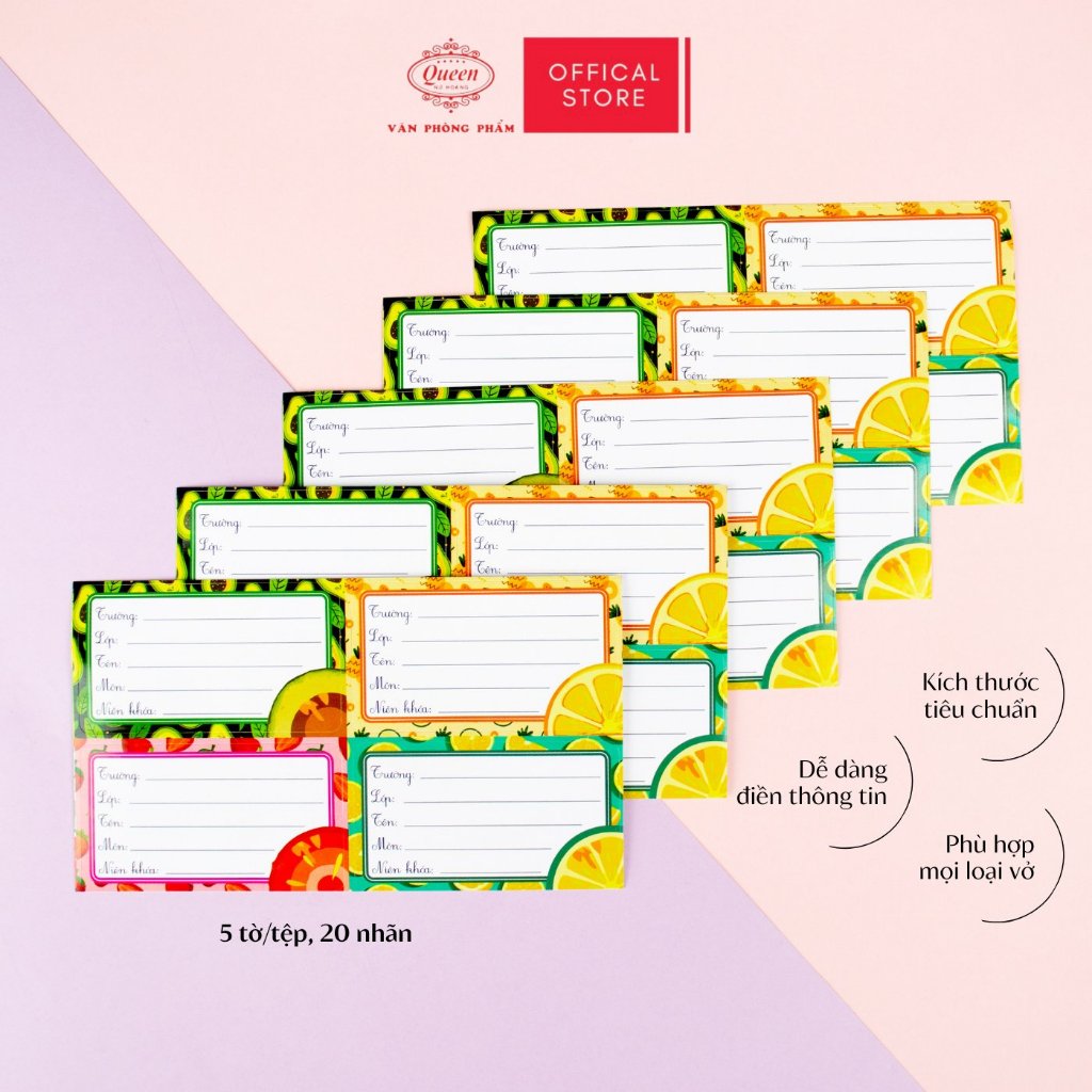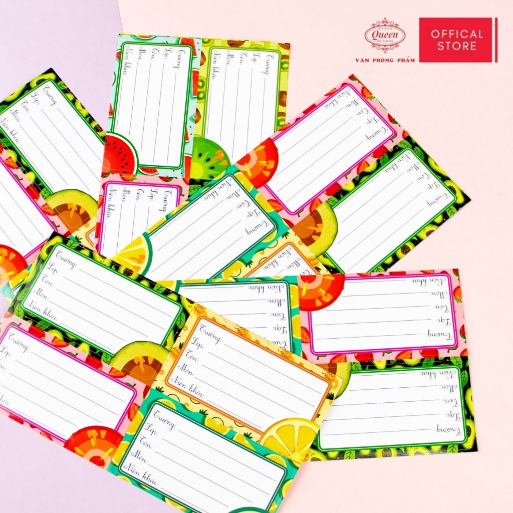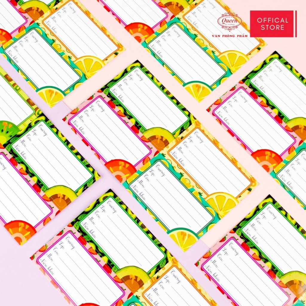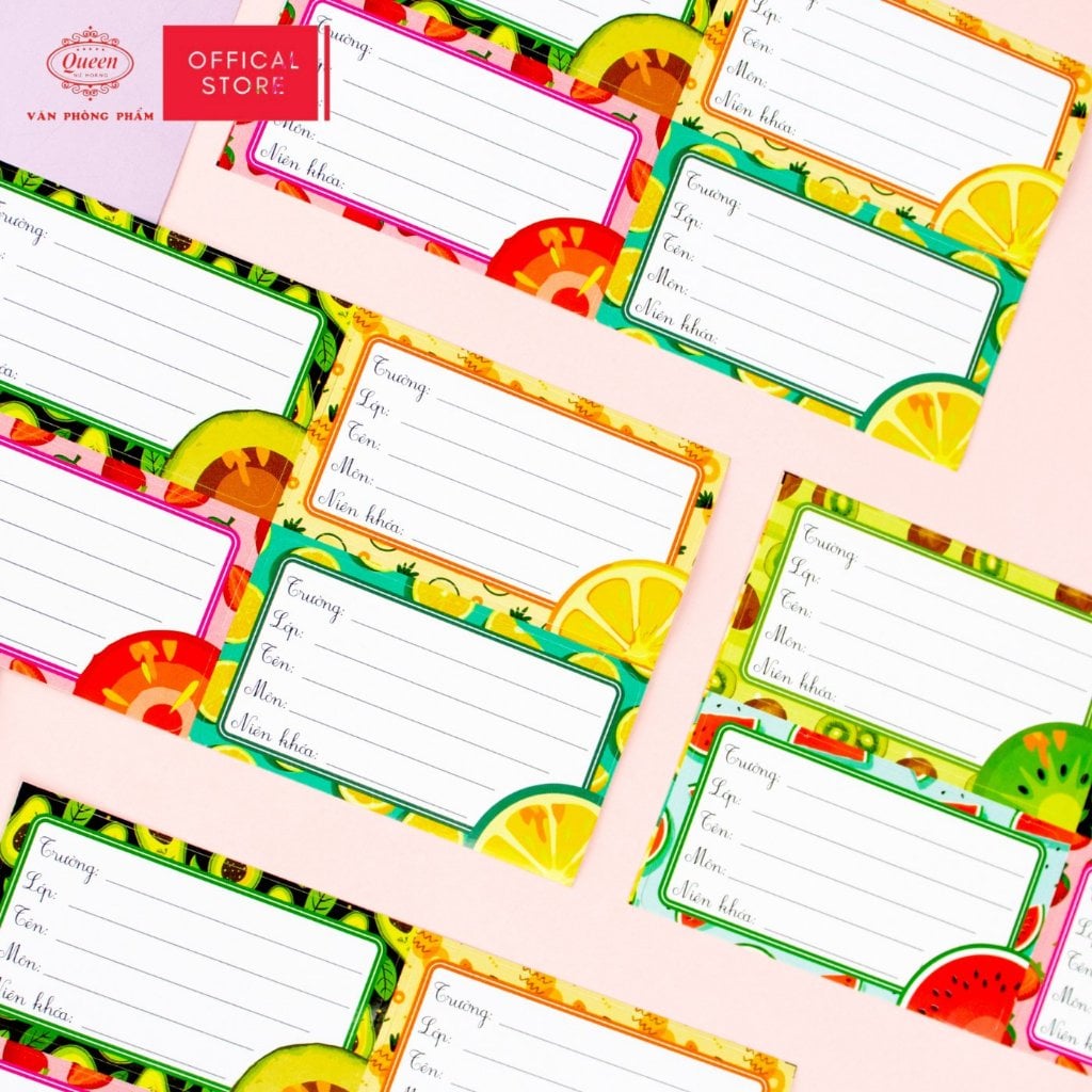 Nhãn Vở Học Sinh Trái Cây Queen – Họa Tiết Trái Cây Dễ Thương, Chống Lem Mực - LB901
